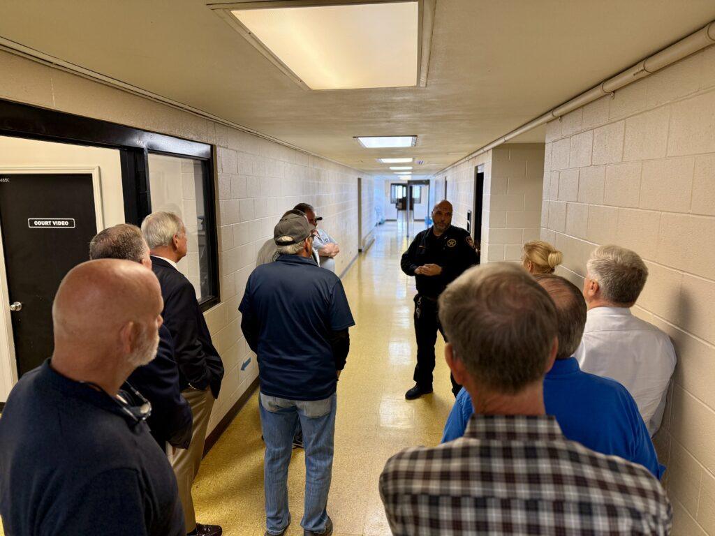 Lieutenant Irish, Sergeant Irish, and Sergeant Jones led small-group tours through the secured areas of the jail, explaining inmate management procedures, safety protocols, and ongoing efforts to maintain order and improve conditions.