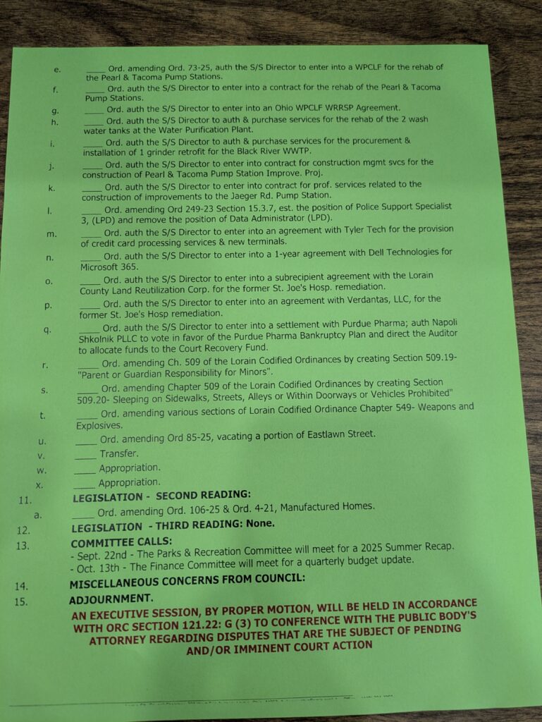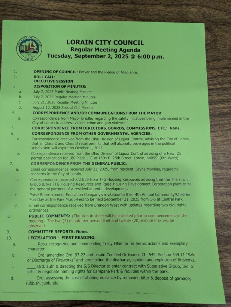 LORAIN — Lorain City Council’s September 2 meeting tackled a packed agenda, advancing major infrastructure projects, approving agreements for the cleanup of the former St. Joseph’s Hospital site, and sending a package of proposed public safety ordinances to committee for further review.