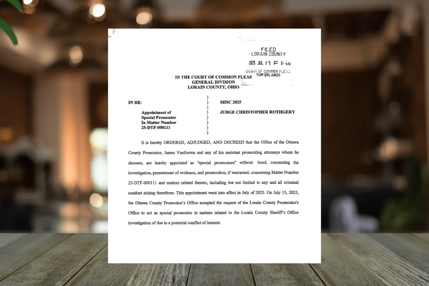 The appointment followed a July 2025 request from Lorain County Prosecutor Tony Cillo, who cited a conflict of interest because the review concerns potential criminal violations involving the outgoing prosecutor and other employees. The Attorney General’s Special Prosecutions Section approved the request and directed coordination through VanEerten.